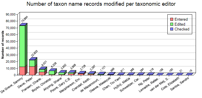 - Checked names: number of names (%) that have been checked by a Taxonomic Editor